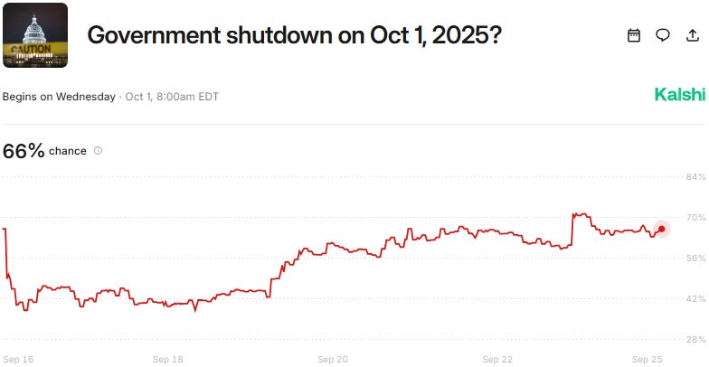 Government Shutdown on October 1, 2025? (Kalshi - Active)
