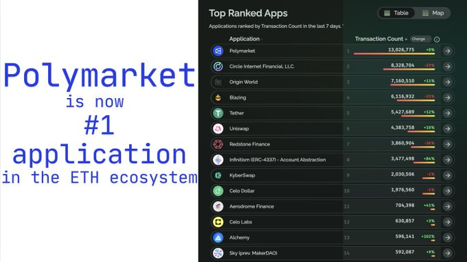 🧮 Data: Polymarket Is Now the #1 App on Ethereum by Transactions