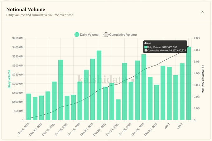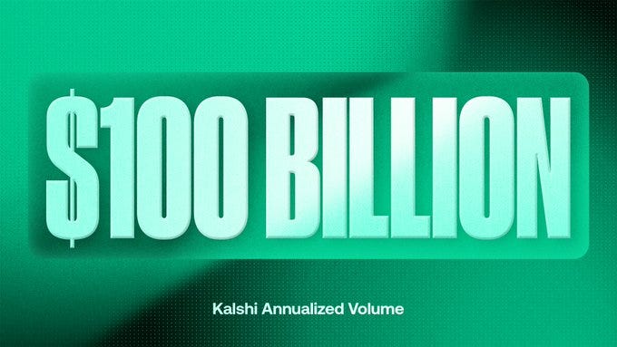 Kalshi posted a new daily notional volume ATH (~$400M) and announced $100B in annualized volume.