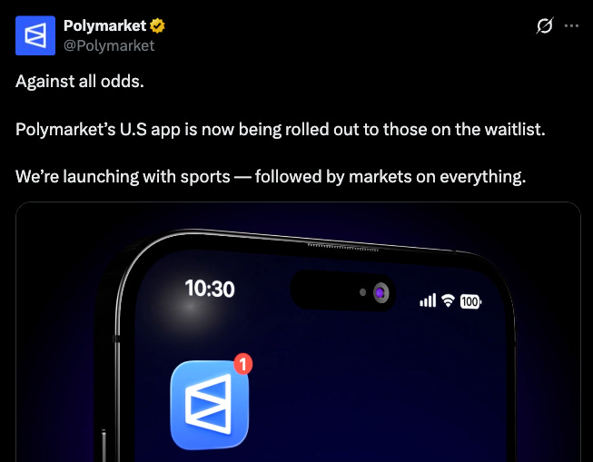 The Polymarket U.S. app is now rolling out to the waitlist.