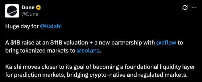Dune announced that Kalshi data is now natively indexed, meaning: