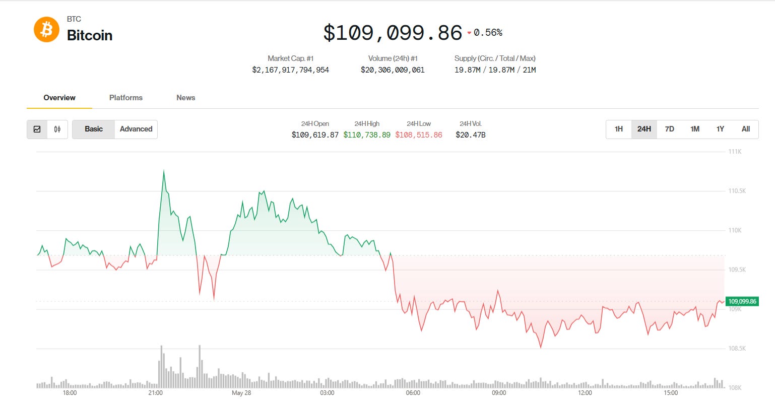 As of May 28, 2025, Bitcoin is trading around $109,068.00, per CoinDesk. Analysts predict Bitcoin could reach $120,000–$130,000 by mid-2025, driven by institutional adoption and post-halving momentum, though tariff-related economic headwinds may cap gains.