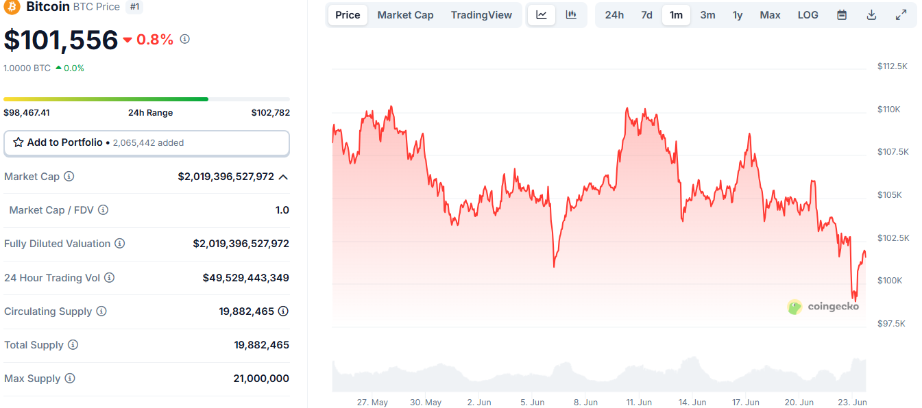 Bitcoin battles to hold above $101k, while the Middle East is witnessing something unprecedented: the US has officially entered the Israel-Iran conflict.