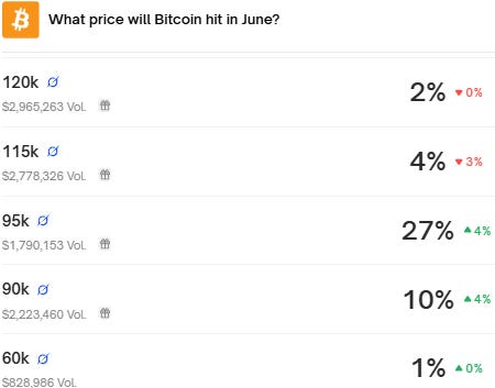On Polymarket, traders are also bearish on Bitcoin’s current value. People are predicting that BTC will further plummet this June: