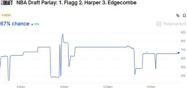 Prediction markets are going crazy on the NBA Draft tonight, with Duke star Cooper Flagg as the unanimous top choice.