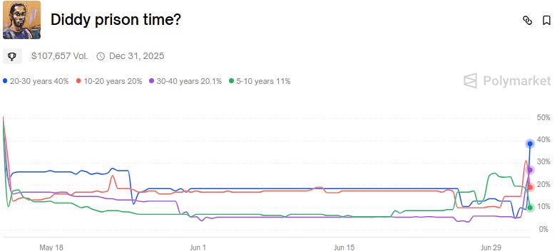 Will Diddy be sentenced to life in prison? (Polymarket)
