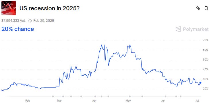 Amid global trade tensions, prediction markets are buzzing with fear of a US recession.