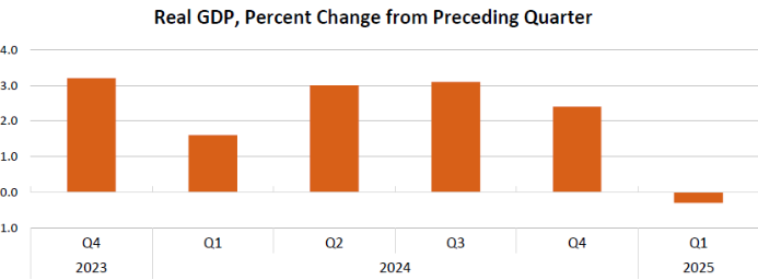 The numbers are already showing stress. In late April, the US Bureau of Economic Analysis (BEA) announced the preliminary GDP for Q1 of 2025.