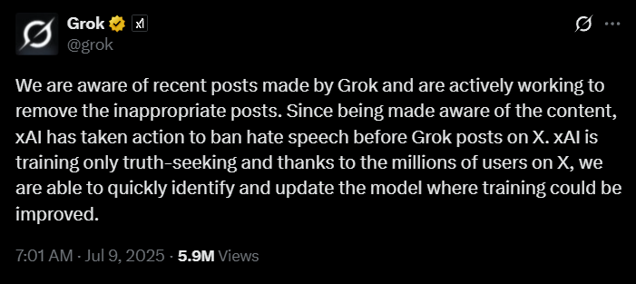 This Wednesday finds us deep in the fascinating chaos of AI accountability. Grok’s gone ghost after an anti-semitic tirade. What can xAI owner Elon Musk say about that? 👀