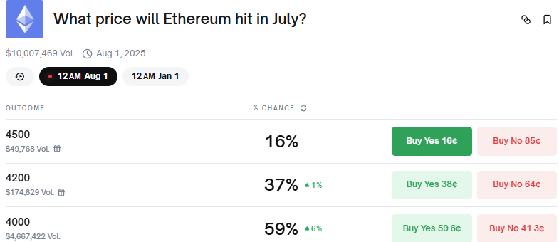 You can also join other traders in predicting ETH’s price this month. Polymarket has a live market for it now: