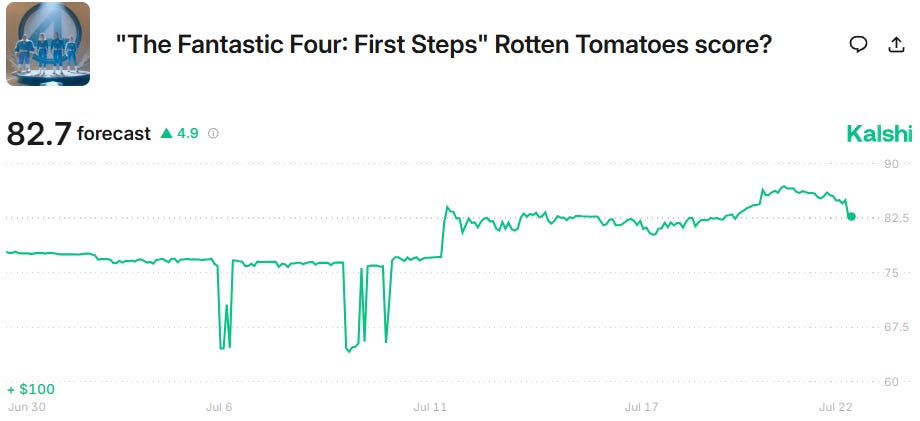 This new MCU film could exceed expectations. It’s not a surprise, as Kalshi traders predict at least an 80% Rotten Tomatoes score for First Steps.