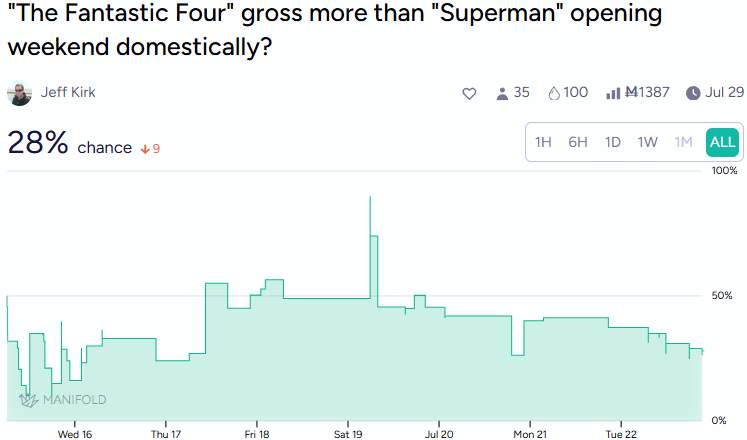 Well, Manifold traders aren’t exactly convinced that First Steps could overtake Superman.