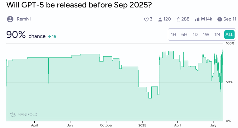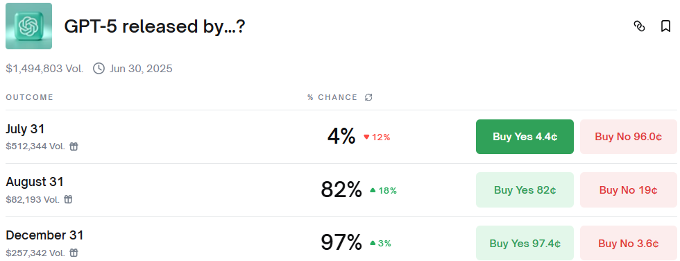 On Polymarket, an August 31 launch prediction has increased its probability by 18%.