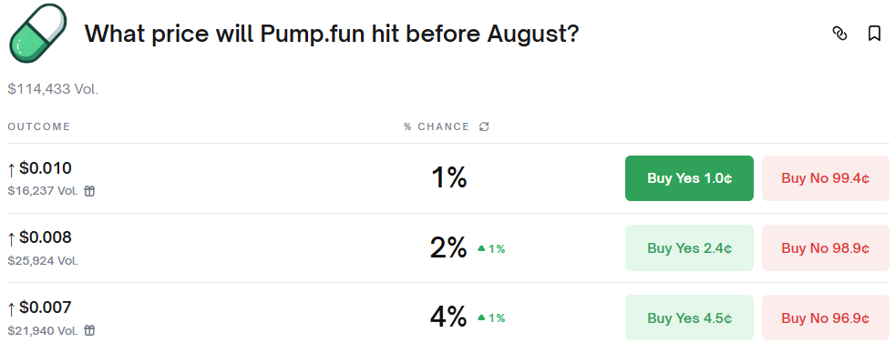 So, it’s not a surprise that Polymarket traders are pulling out from the Pump.fun hype. Almost no one is foreseeing a PUMP price increase before August.