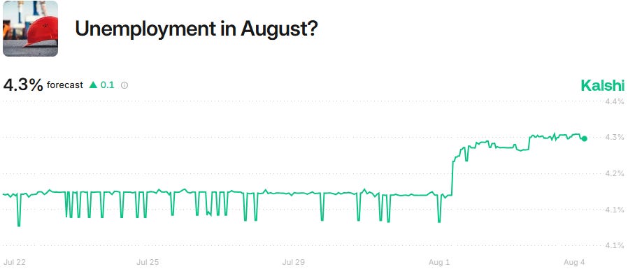As such, prediction markets are speculating about the unemployment rate this August. Kalshi traders are predicting that it will increase for the second straight month.