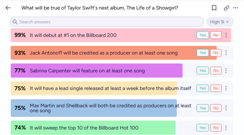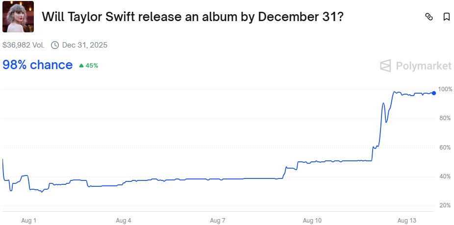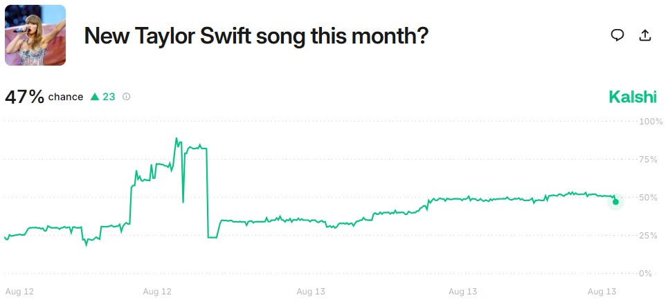Well, how about a new Taylor Swift song this month, then? Kalshi traders like that idea.