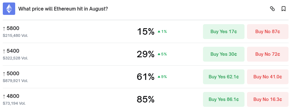 On Polymarket, ETH reaching $4,800 in August is almost a sure thing.