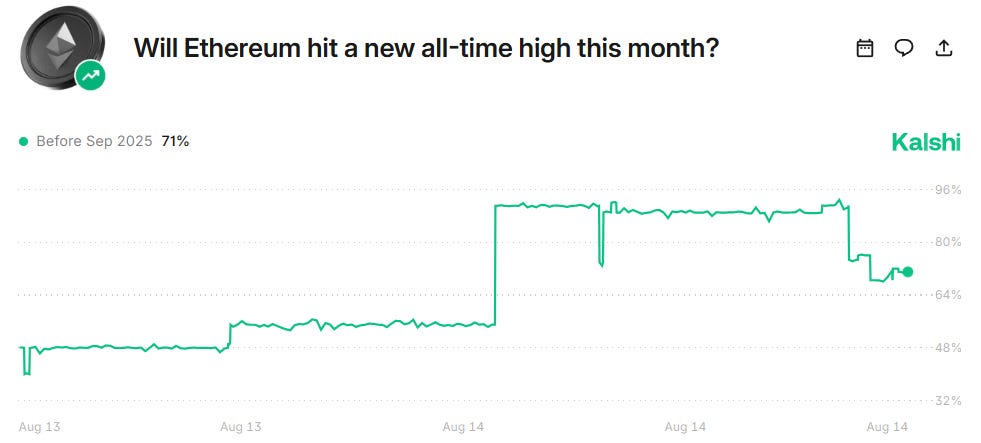 Kalshi traders are also bullish on Ethereum hitting a new all-time high in August.