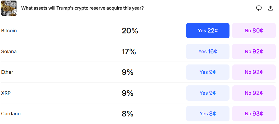 Kalshi traders have also been paying attention to Cardano for some time now. They look at it as one of the assets that Trump’s crypto reserve could acquire in 2025.