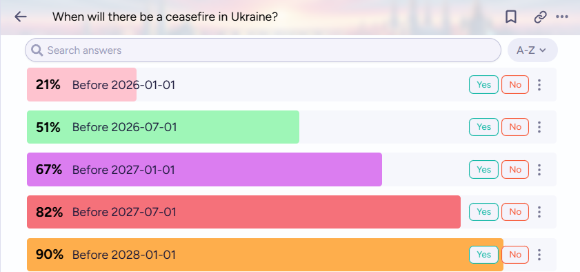 Manifold traders aren’t that optimistic either. Of course, they believe that there will be a ceasefire sometime in the future (years from now). But not in the next few months.