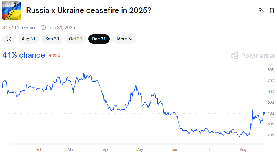 On Polymarket, the probability for this ceasefire is still below 50%. It has gone up, short-term, but traders might need more follow-up from both countries.
