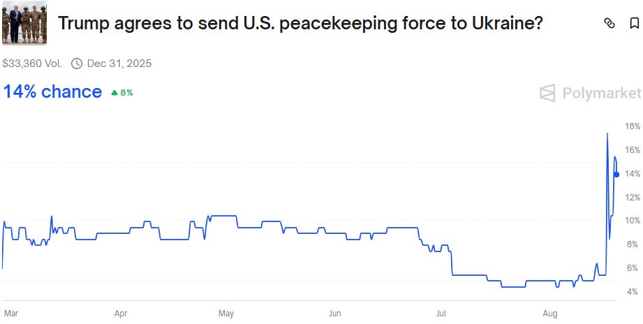 Moreover, Trump might just send US troops to Ukraine as “part of peacekeeping efforts.” However, Polymarket traders aren’t too optimistic about this.