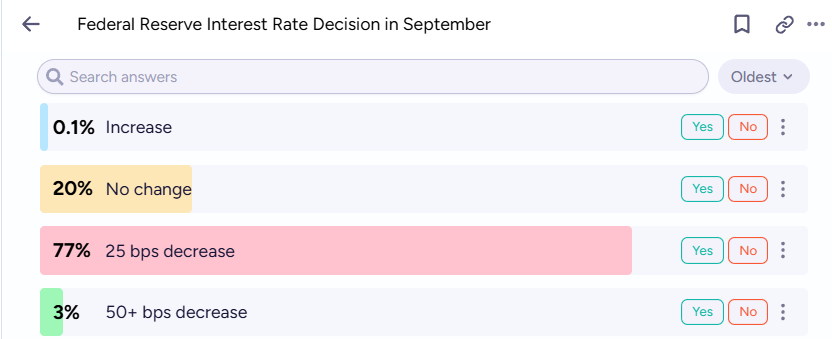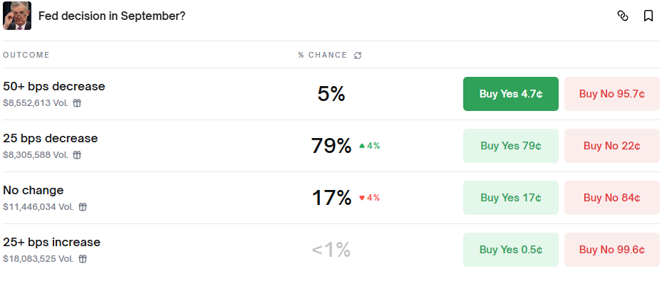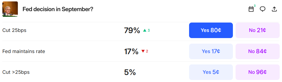 After months of holding steady, Fed Chair Jerome Powell’s recent comments have cracked the door open for a potential September rate cut. Prediction markets are also weighing in. Let’s find out where they are positioning right now. 👀