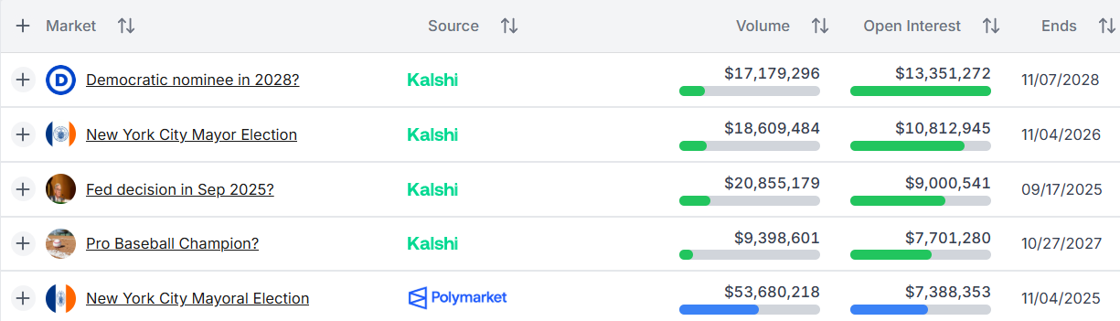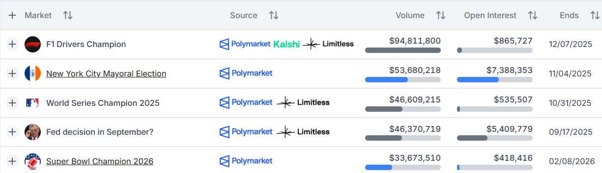 See the most trending markets on prediction platforms like Polymarket, Kalshi, and Limitless.