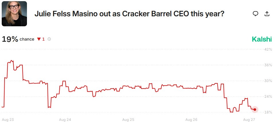 Prediction markets are talking about potential personnel changes in Cracker Barrel. Which names are involved? Let’s find out below. 👇
