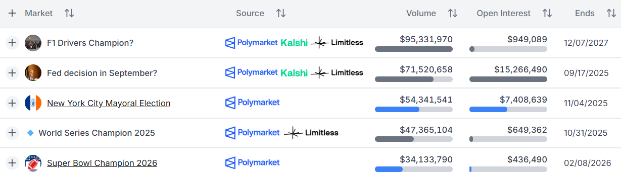 Prediction markets with the most trading activity.