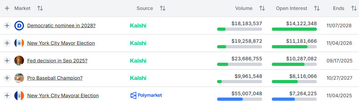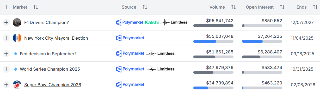 See the most trending markets on prediction platforms like Polymarket, Kalshi, and Limitless.