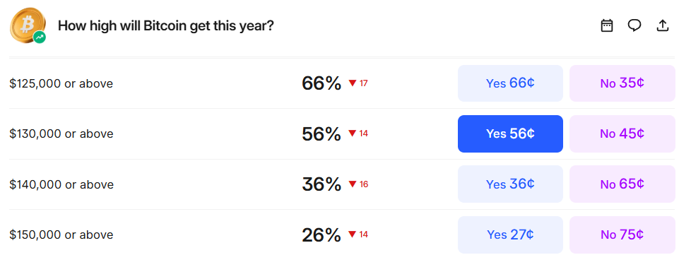 What does this mean for the market, and are prediction traders concerned about BTC’s upside this year?