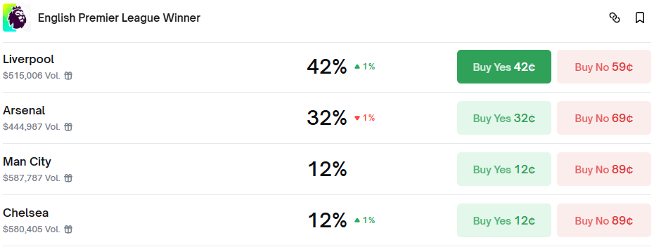 English Premier League Winner (Polymarket)