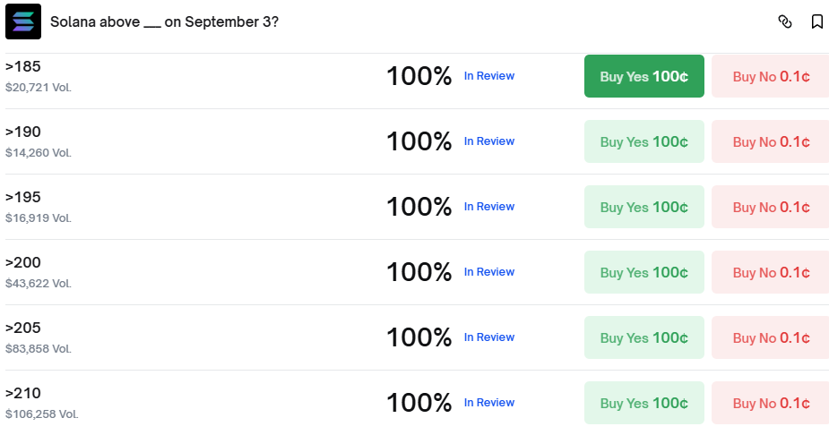 Why now: Headlines over the past month kept SOL in the news. An analyst talked about a $500 upside in July. Then, there’s the fund-formation buzz around a Solana treasury vehicle in late August. The cluster’s size suggests that traders are playing path dependency into the close.