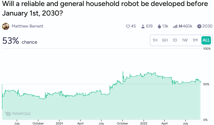 Will a reliable and general household robot be developed before 2030? (Manifold - Active)