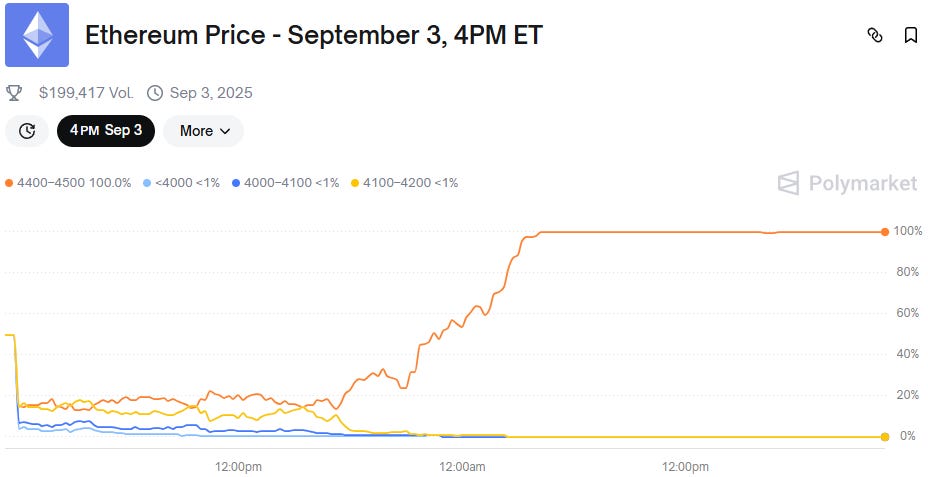 Ethereum Price - September 3, 4PM ET (Polymarket - In Review)