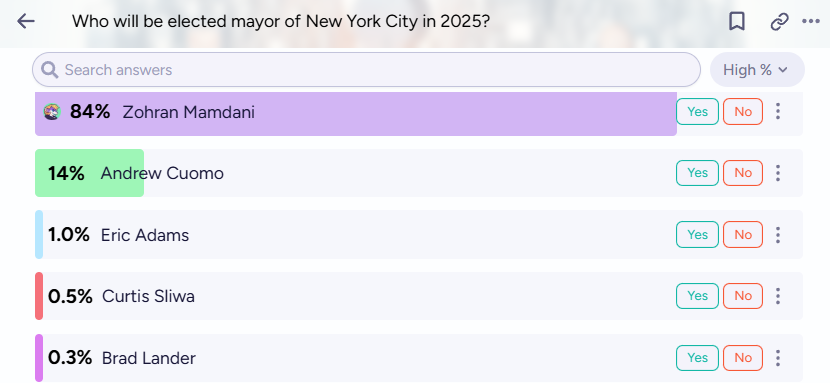 Who will be elected mayor of New York City in 2025? (Manifold - Active)