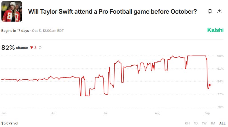 Will Taylor Swift Appear at an NFL Game in September 2025? (Kalshi - Active)