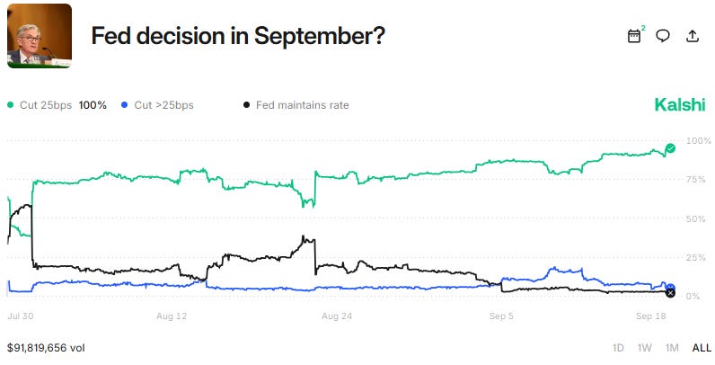Unlike the wild swings in other market categories like crypto, this Fed rate cut market has been a slow-moving certainty that has been building for weeks.