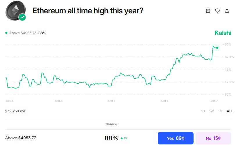 Given the current euphoria surrounding Bitcoin’s own journey to a new all-time high, Kalshi traders are bullish on Ethereum’s chances of surpassing its own record by the end of 2025.