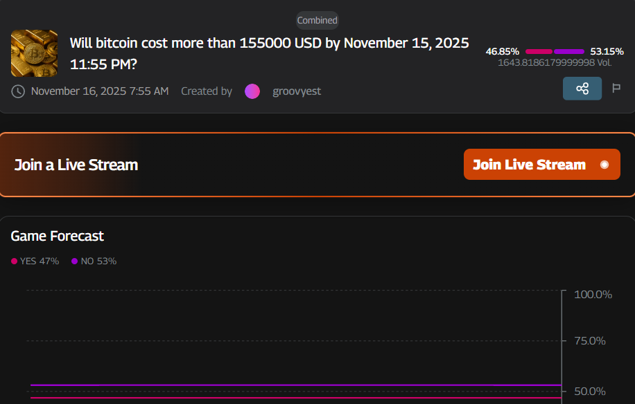 So, with BTC hitting $125,000, what’s the next goal? Is $150,000 realistic by November of this year? If you think so, you can play your predictions on Groovy Market and earn rewards.