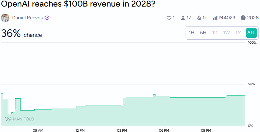 OpenAI Reaches $100B Revenue in 2028? (Manifold - Active)