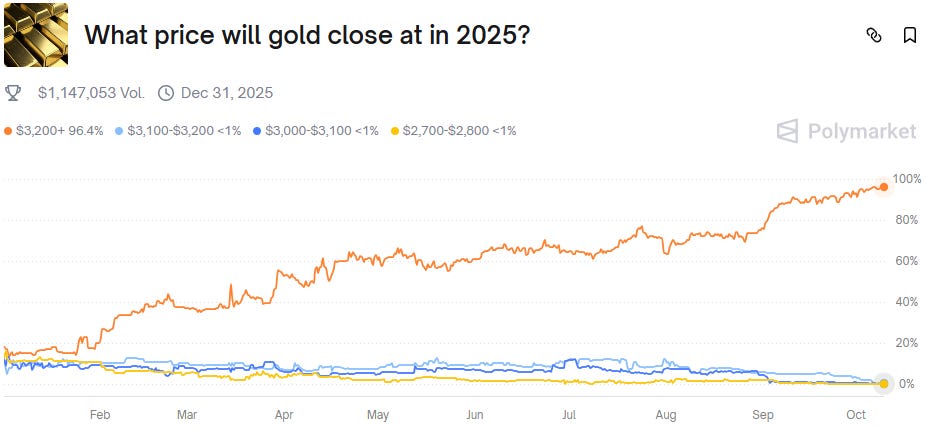 What Price Will Gold Close At in 2025? (Polymarket - Active)