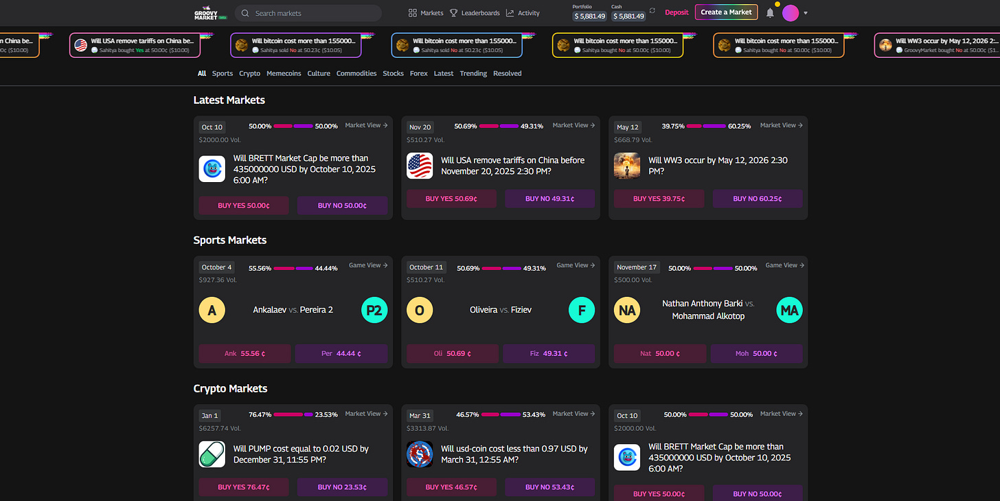 If you have insights on prediction markets and a knack for writing, we invite you to submit your work for consideration. Selected contributions will be featured in this newsletter, reaching an audience of over 1,000 engaged readers. Please send your piece to contribute@groovymarket.xyz.