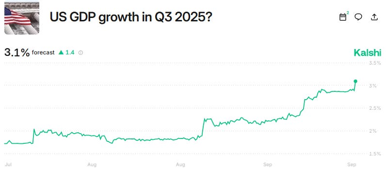Essentially, the crowd on Kalshi is predicting a “good, but not great” quarter. They believe the economic strength seen in Q2 will moderate, falling back to a more sustainable level.