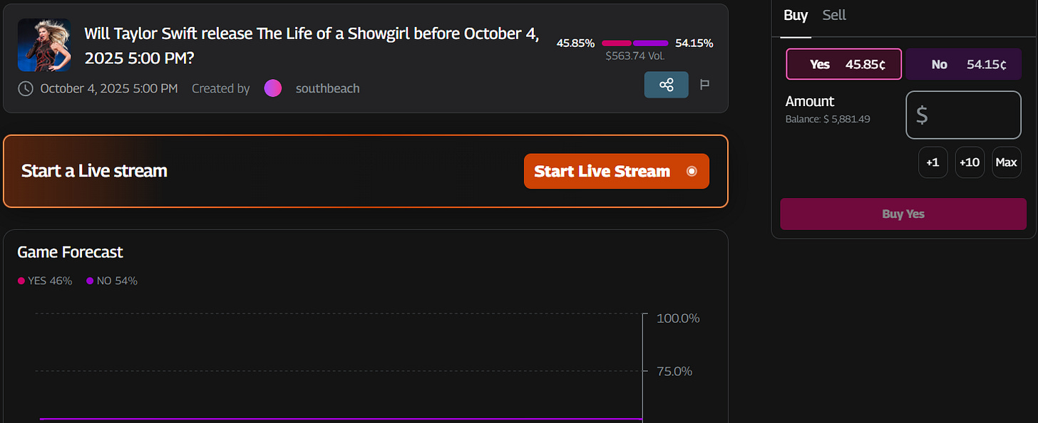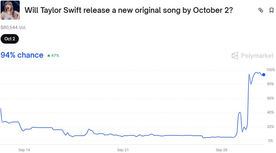 Will Taylor Swift Release a New Original Song by October 2? (Polymarket - Active)