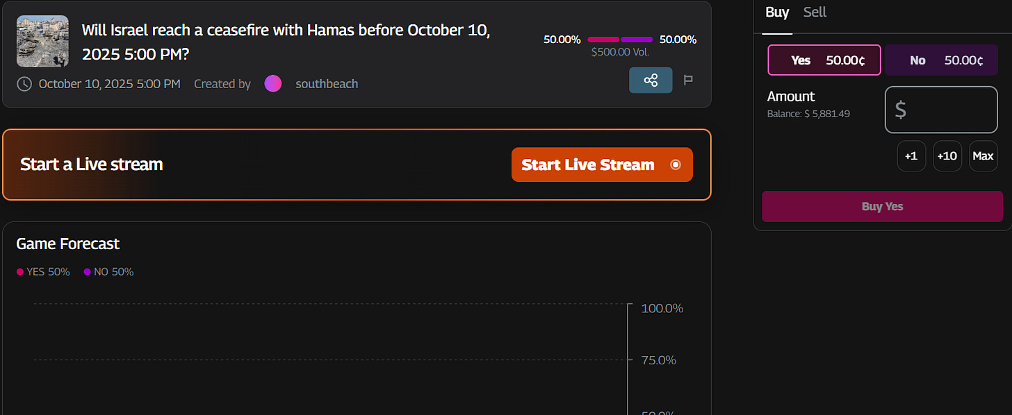 A non-existent raid could actually increase the chances of a ceasefire between Israel and Hamas. You can predict a ceasefire between the two sides on Groovy Market.