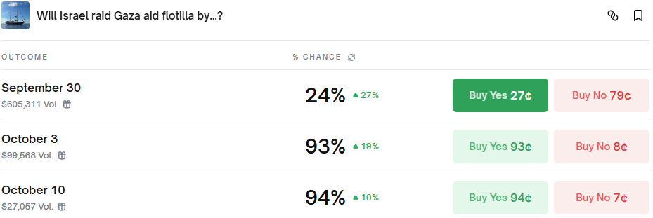 Will Israel Raid Gaza Aid Flotilla By...? (Polymarket - Active)