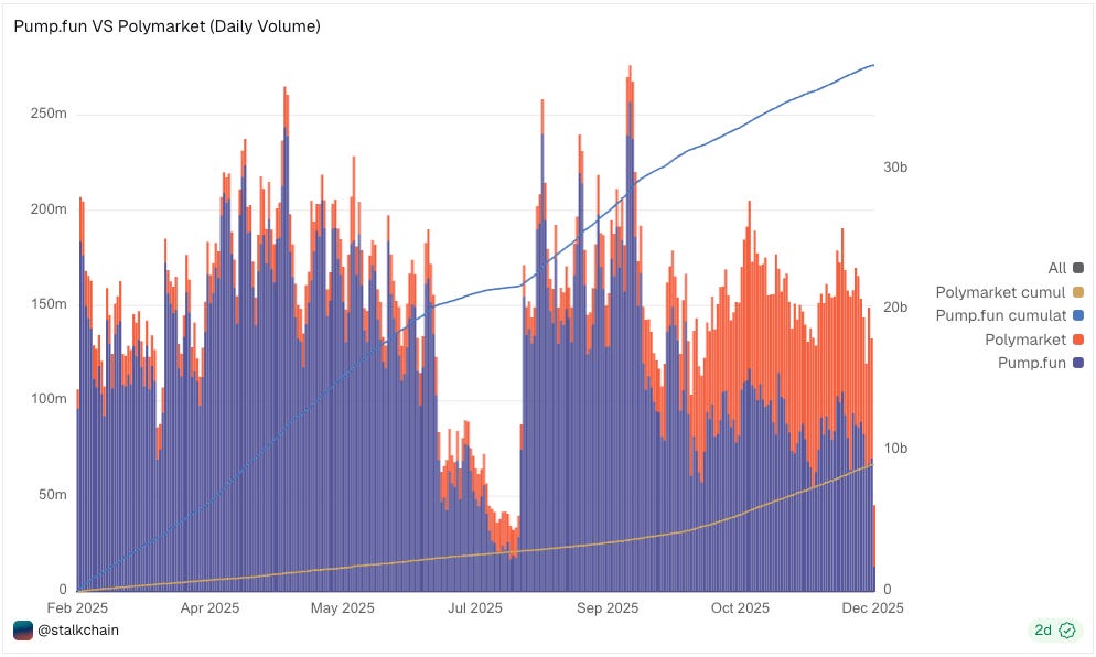 Dune dashboard compares PumpFun and Polymarket activity — link