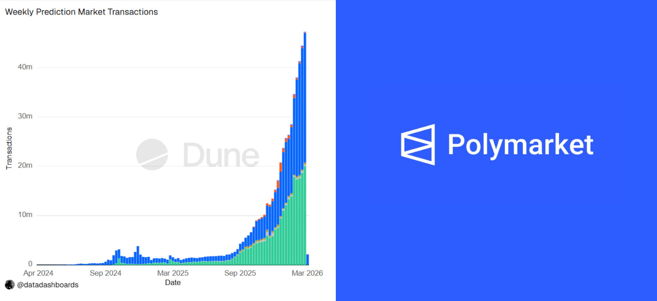 Prediction markets recorded a new all-time high of 47.26M weekly transactions, led by Polymarket with 26.26M - Read